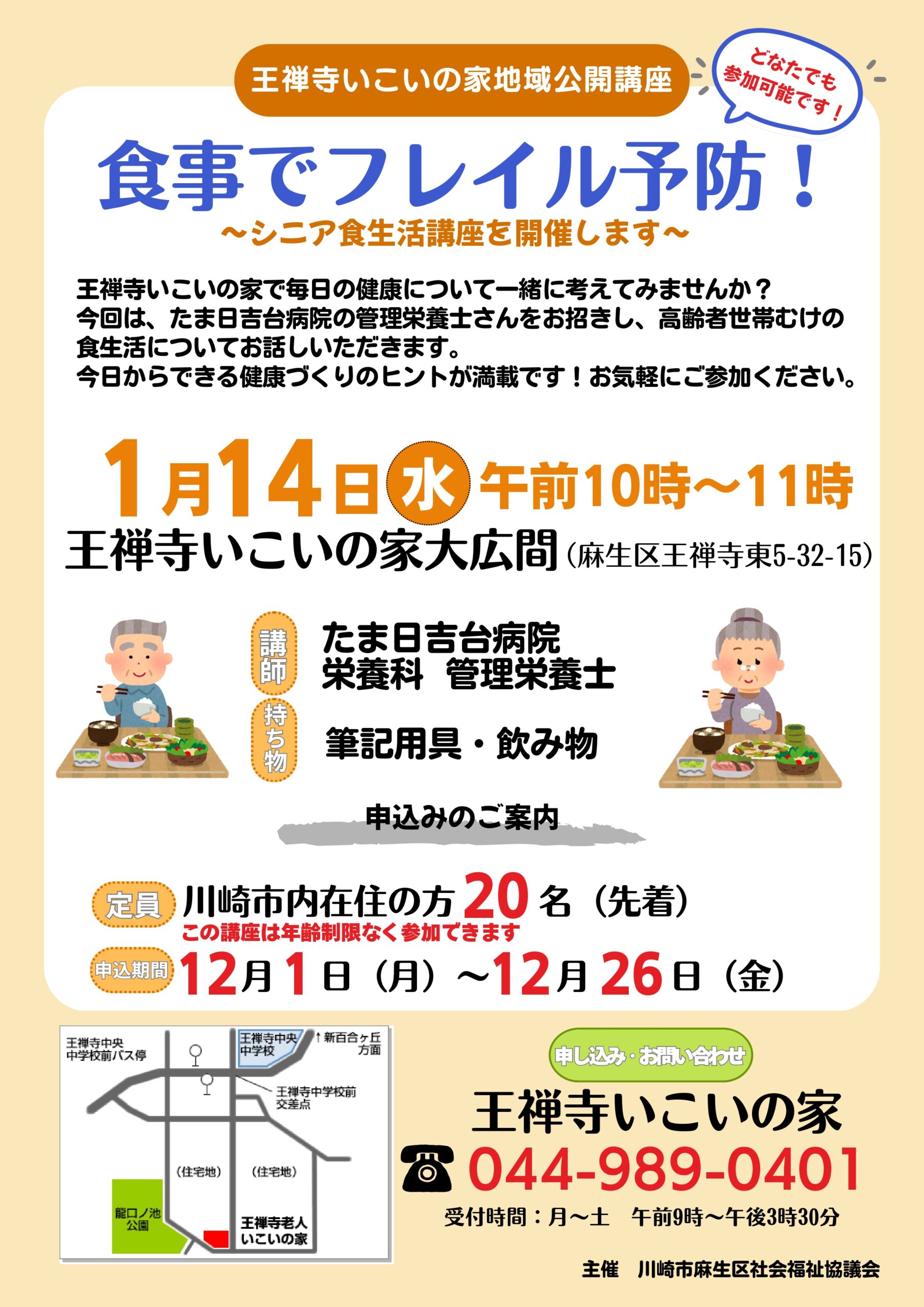 主催・申込先: 川崎市麻生区社会福祉協議会 王禅寺いこいの家(TEL:044-953-9870)