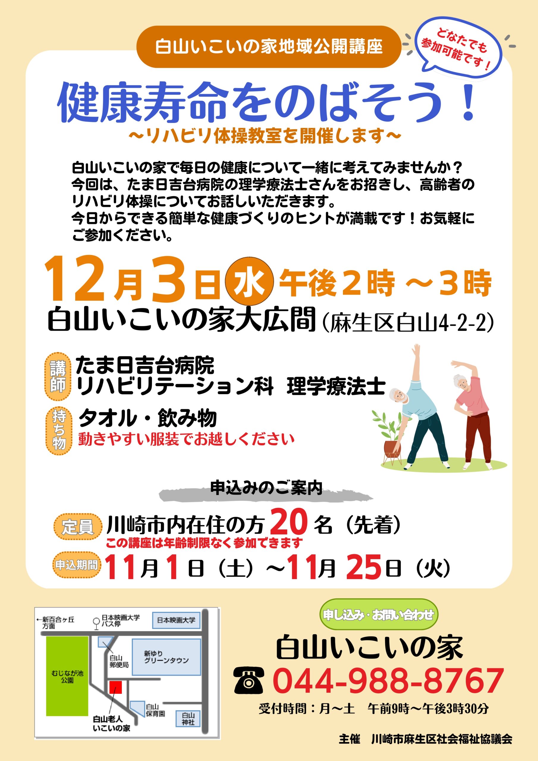 主催・申込先: 川崎市麻生区社会福祉協議会 白山いこいの家(TEL:044-989-0401)