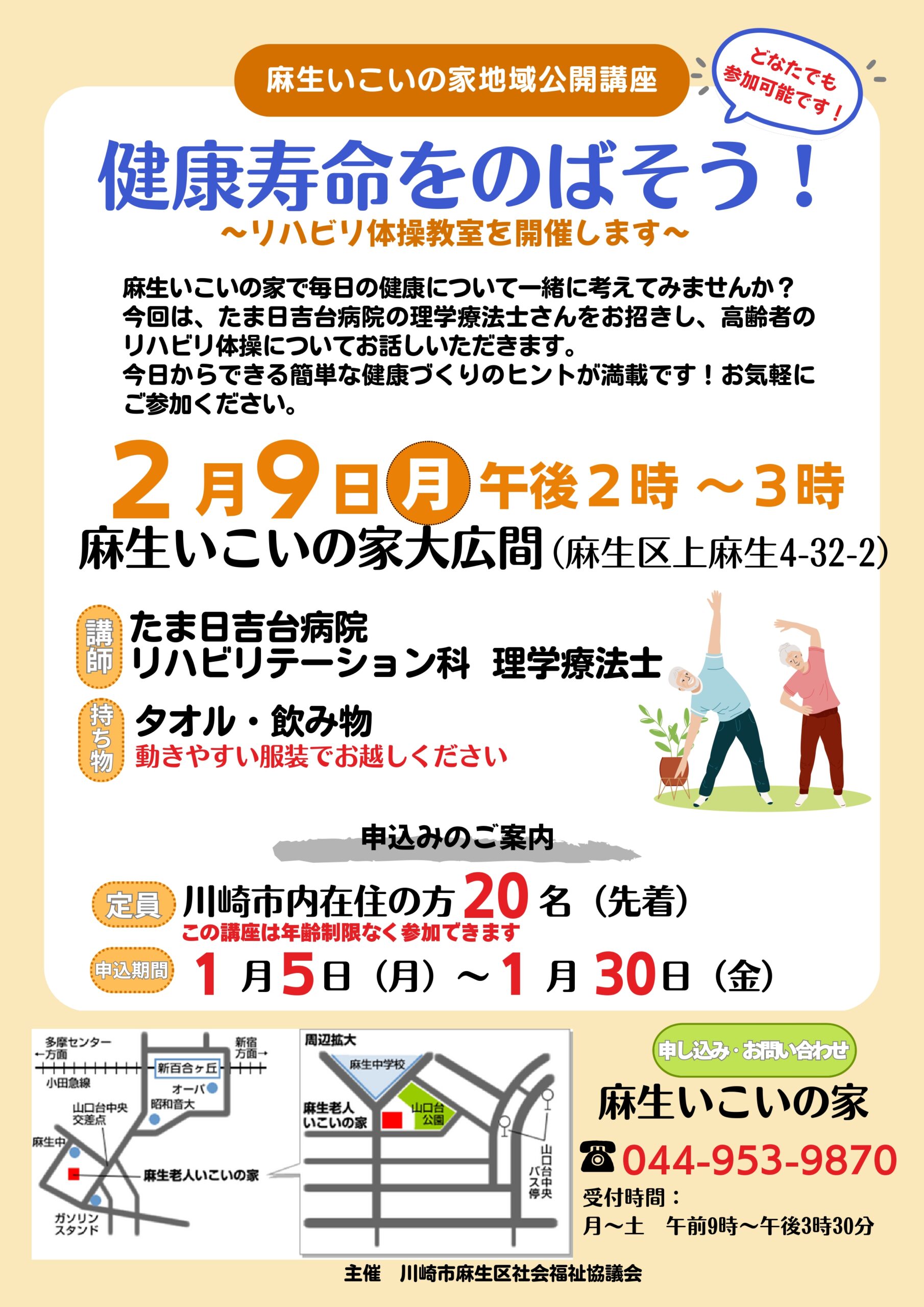 主催・申込先: 川崎市麻生区社会福祉協議会 麻生いこいの家(TEL:044-988-8767)